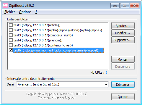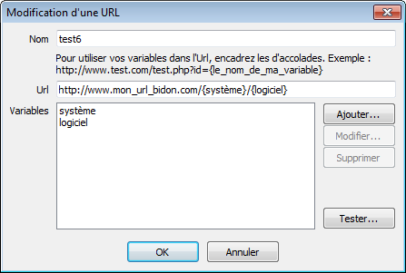 Avec l'arrivée de la v2, il est à présent possible de définir plusieurs URL et non plus une seule comme c'était le cas auparavant. Par ailleurs, chaque URL peut être "construite" à partir de variables que l'utilisateur déclarera. Le contenu de ces variables pouvant indifféremment être issu d'une liste de valeurs, du contenu d'un fichier, voir même de valeurs aléatoires, date, heure, compteur...