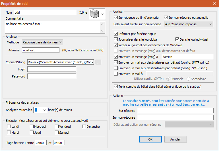 - possibilité de définir des périodes d'exclusion d'analyse (jour et heure),